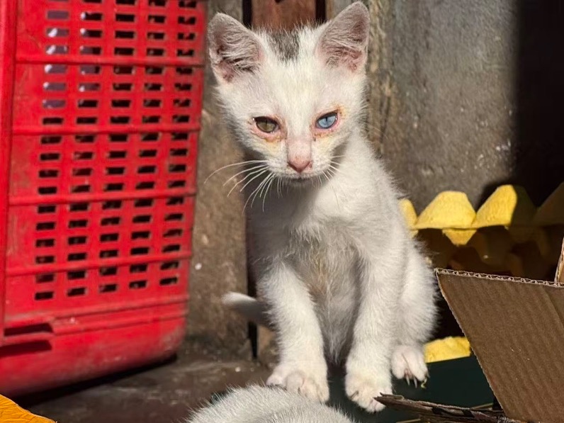 动物情况:楼下的流浪猫,一个多月小,眼睛可能有炎症,打算帮它检查