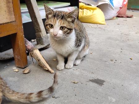 大概是一个月前发现这只猫,刚来的时候还很心很漂亮,以为是谁家走丢的,但是找了很久也没有找到主人,最近经常被一只狸花猫和一只狗打,和邻居商量好了,给他绝育圈养起来找领养这样子对宠物猫在外面流浪可能会好一些!