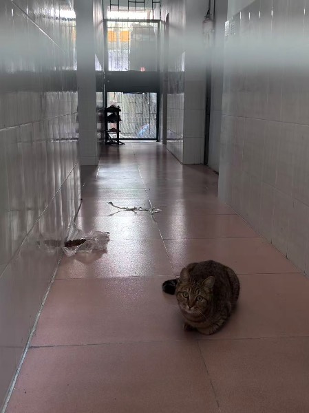 公司园区流浪猫,某天来到我司楼层找吃的,投喂了猫粮和水,几天后发现疑似怀孕