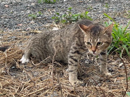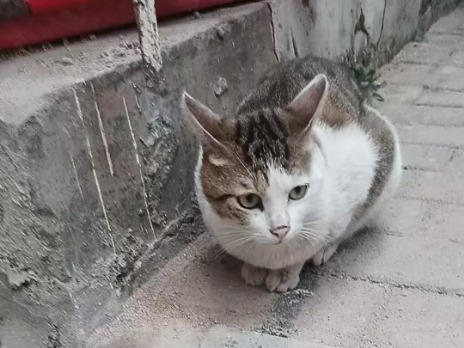 白母猫,已生育一次,子女3个月大左右。在塘坑仔村出入口旁垃圾站附近生活