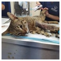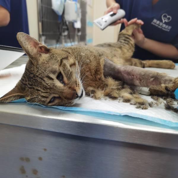 动物情况:跟别的猫打架 然后手臂那里有好多洞 感染了需要清创