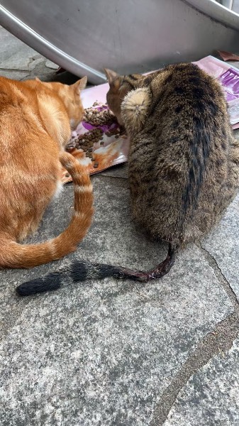 动物情况:16日晚下班,在上班附近发现流浪猫,在被驱逐,走前一看,已经是尾巴坏死,皮开肉绽的状态,遂紧急送往联合医院盛龙分院救治