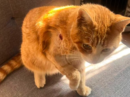 动物情况:学校里的流浪猫,昨天下午有同学看到他右边背上有伤口,比较大,医院说有感染