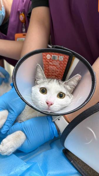 医院联络人意见: 2025/12/27,医院反馈:动物已送到医院,医院认可流浪猫身份。联络人核实:舒医生接诊,做了检查,目前在医院接受流浪期间虐待导致的外伤处置措施,因治疗费用问题带回办公室自己照顾.后续持续保持观察.身体恢复健康可能需要拔牙以及绝育。。猫救助日期:12.27