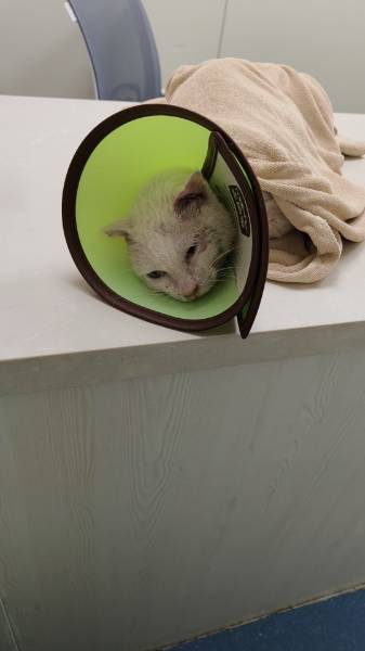 动物情况:小猫半边脸被砍伤,于今天晚上9:30左右入院后续治疗费用会大一点,福田联合宠物医院