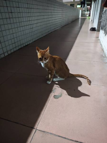 动物情况:我们是住在工厂厂房的宿舍里,然后楼下有多只流浪猫,这个是其中一只母猫的小猫崽,没收养,喂了一段时间了,经常会跑到我们房间门口要吃的,昨天突然发现喂完他吃的后会呕吐,今天去楼下看他的时候也发现了有呕吐物,同时喂东西不怎么吃,我们把奥拉美挫胶囊调过剂量的和阿莫西林,混在吃的里面给他吃,他也不怎么吃,晚点再去喂终于吃了点,吃完过会就又吐了