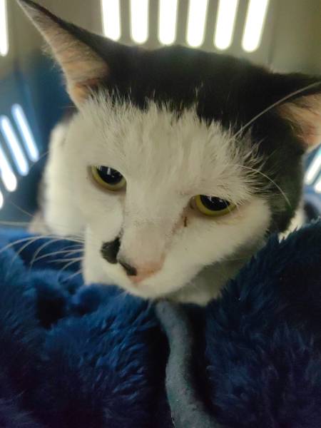 动物情况:吃饭回家上楼梯时看到这只猫蜷缩在楼梯上,全身散发着臭味。耳朵边有伤痕,不忍心就捡起带去了医院。医院认可流浪身份,并做了内外的检查。检查后发现有贫血、脱水、以及耳部的伤痕,但已结痂。臭味是身上沾有粪便,医生有做剃毛处理。由于没有其他问题,医生建议带回家修养观察。
