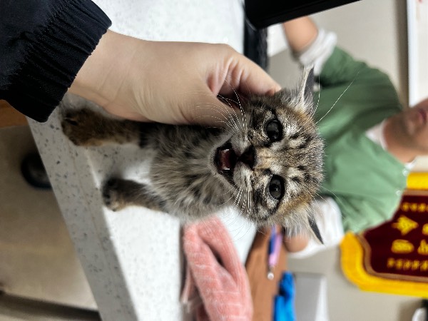 动物情况:1月14日晚上9点多回家路上路过宝安中心医院停车场,发现一只狸花小猫咪在车子下面一直不停的叫唤,随即带它到了附近的瑞鹏宠物医院挂号就诊,目前已做了几项检查(基础检查,呼吸道pcr,人宠共患,传染病筛查等),等待明天的检查结果,由于家里有猫咪,今晚已寄养在医院。