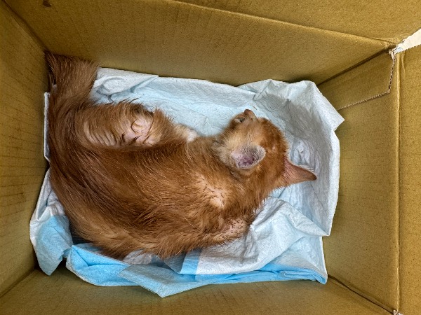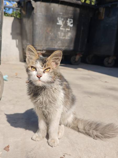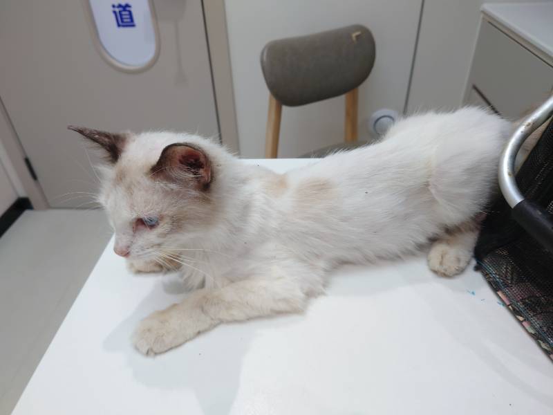 动物情况:今天傍晚在路边发现一只猫蜷缩在路边,一动不动, 靠近发现双眼失明,皮包骨,而且掉毛严重