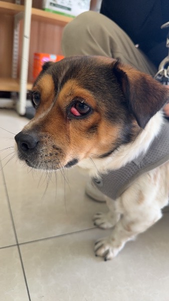 动物情况:12月份遗弃在喂猫点的后,今申请了流浪狗绝育,现第三眼睑突出,想和绝育手术一起安排,治疗后找领养