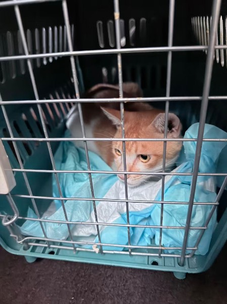 本次为二次申请,具体情况如下:前次救助治疗结束后,我已按规范流程将该橘白公猫放归自然环境。但放归后不久,我于10月24日下午发现该猫,随即对它进行了持续观察,发现其左后腿有明显新伤口,且左腿完全不能着地,无法用力行走。考虑到伤情可能恶化,我已第一时间将猫咪送往医院,目前已经过检查与治疗,后续需要进行入院与静养观察。
