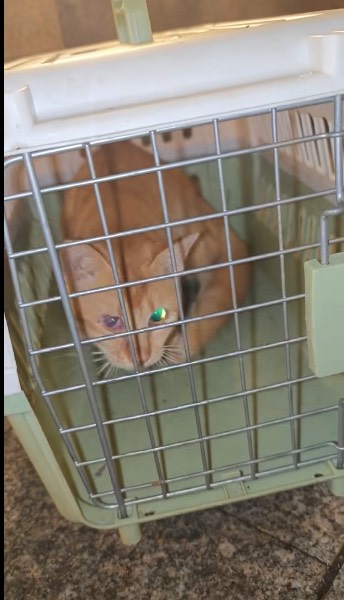 动物情况:10月10号在横岗人民公园发现猫的一只眼睛充血,对光没反应,经过多日蹲点寻找,10月22号晚上6点左右才成功抓住送去宠知心医院救治,医生诊治角膜穿孔,眼球萎缩,已经没有视力,可以通过滴眼药控制感染。