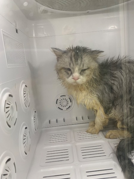 动物情况:在家楼下垃圾桶旁边捡到的猫咪,初步检查猫咪眼睛发炎严重,眼脸内翻,需要手术治疗