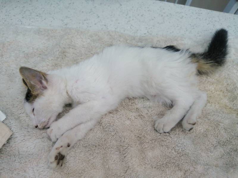 动物情况:小猫是在汽车底下发现的,脚有问题,送去医院,需要住院治疗