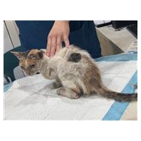 医院联络人意见: 2026/03/01,医院反馈:动物已送到医院,医院认可流浪猫身份。联络人核实:猫咪炎症很高,后腿外伤感染严重,精神食欲尚可,有点软便,冠状病毒阳性,目前留医治疗。猫救助日期:2.25