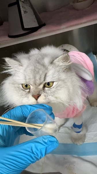 动物情况:流浪母猫,已知流浪2-3个月,原计划绝育,突然出现拉稀现象一整天,医生建议进行治疗。