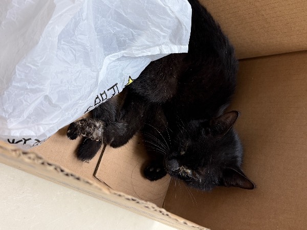 动物情况:2026.3.9上午在布吉莹莹小店门口垃圾桶旁捡到小猫 身上散发腥臭味 有苍蝇围绕